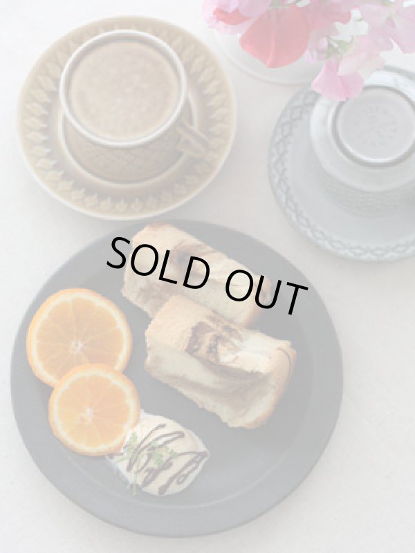 益子焼 チャコールラウンドリムプレート